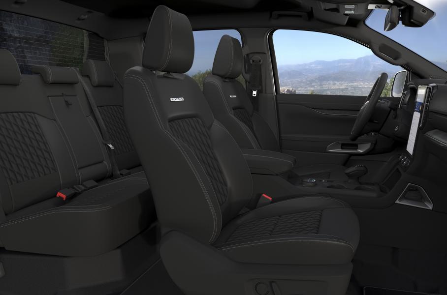 Передние сиденья имеют электрорегулировки в 10 направлениях, оборудованы подогревом и вентиляцией. Диагональ «приборки» и вертикально ориентированного основного экрана — 12 дюймов. Стандартными для Ranger Platinum также стали аудиосистема Bang & Olufsen, беспроводная зарядка и модем FordPass Connect. И без того широкий перечень электронных помощников дополнен ассистентом выезда с парковки, круговым обзором, контролем поперечного графика и системой мониторинга слепых зон самой машины и прицепа.