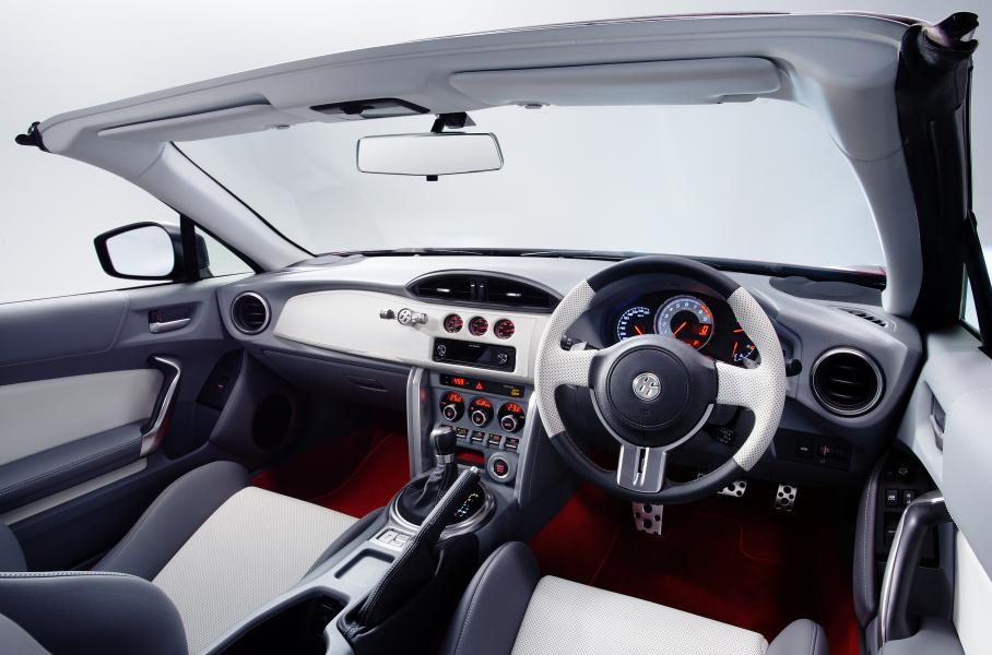 Отделку интерьера концепт-кара делали в Милане. Крыша FT-86 Open оснащена автоматическим механизмом, который укладывает ее за вторым рядом кресел, практически не занимая места в багажнике.