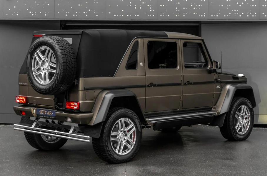 Продавец утверждает, что это единственный экземпляр, доступный в РоссииMercedes-Maybach G 650 в модификации Landaulet представляет собой внедорожник с частично открытым кузовом. Жесткая крыша автомобиля над задними сиденьями заменена складным мягким верхом. В задней части салона установлены индивидуальные сиденья с функциями вентиляции и массажа, а также выдвижной подставкой для ног. Интерьер выполнен из черно-коричневой кожи. Водительскую часть отделяет специальная перегородка.