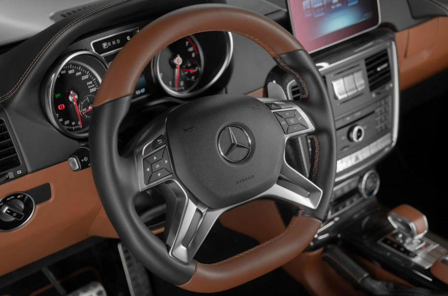 Внешне Гелендваген отличается карбоновым обвесом и эксклюзивным бронзовым оттенком кузова. Под капотом внедорожника установлен 630-сильный V12, который работает вместе с семиступенчатой автоматической трансмиссией и системой полного привода. Приобрести один из 99 существующих «Геликов» можно в Москве за 92 миллиона рублей.