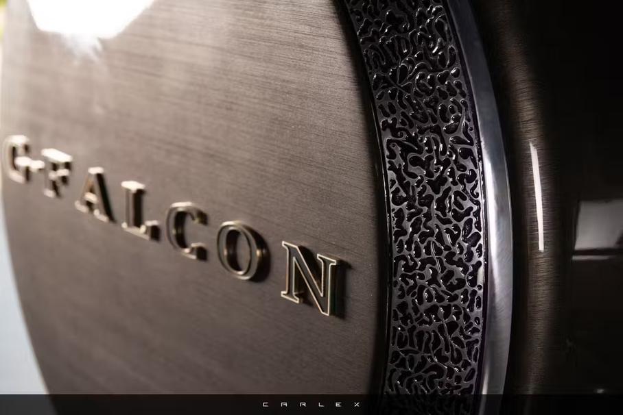 G-Falcon дополнен карбоновым обвесом, который включает в себя передний и задний бамперы, решётку радиатора, накладки на колёсные арки и пороги — как и вся остальная часть кузова, не покрытая гравировкой, они украшены алмазной пылью. На весь кузов её ушёл килограмм! Также машина получила новые колёса, окрашенные в цвет кузова.