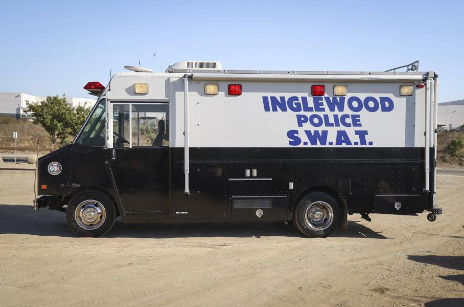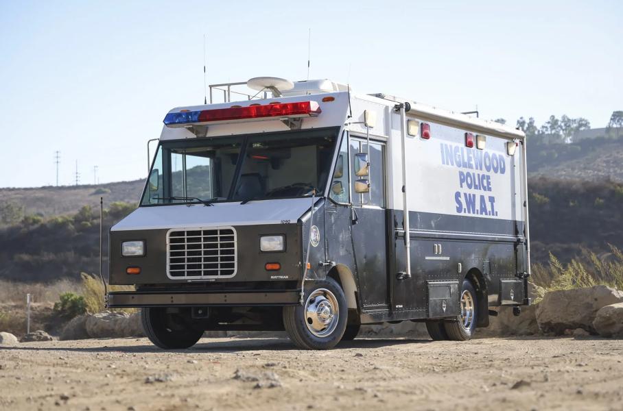 Машина сохранилась полностью в служебной модификацииСпустя почти три десятилетия фургон сохранил спецназовскую ливрею, полицейскую «мигалку» над лобовым стеклом и лестницу для доступа на крышу. На бортах машины нанесены логотипы Inglewood Police S.W.A.T. Автомобиль обут в 20-дюймовые стальные колесные диски с покрышками Goodyear.