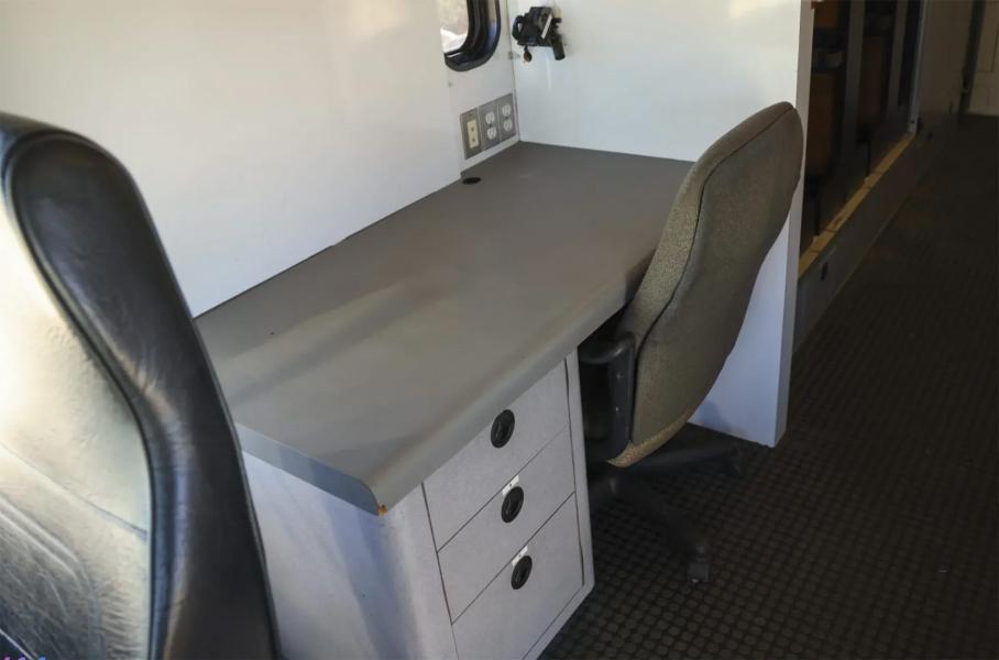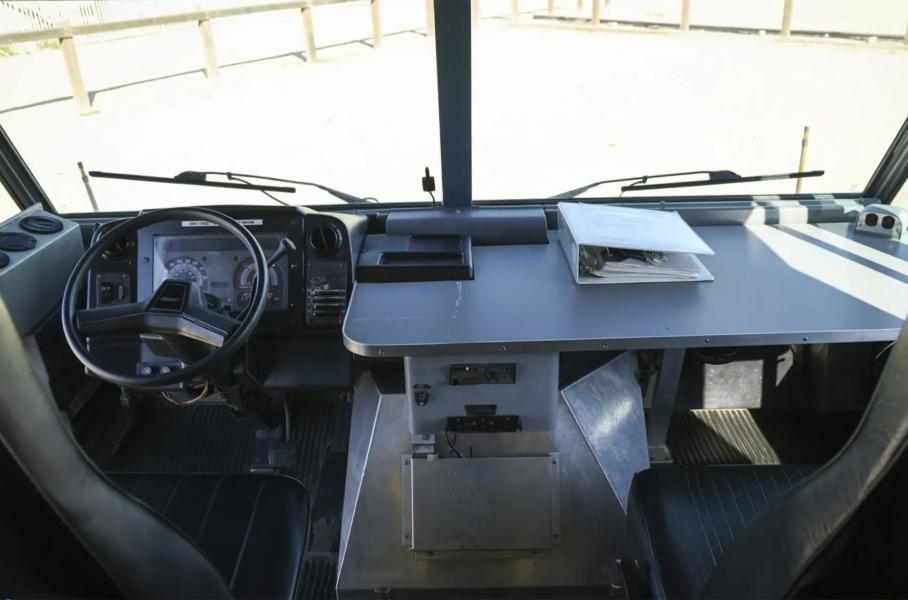 В салоне полицейской машины есть множество ящиков для хранения оружия и боеприпасов, рабочие столы с розетками и информационные доски для записи подробностей спецопераций. Кроме того, в список опций фургона входят кондиционер, телевизор с видеомагнитофоном Panasonic, а также аудиоподготовка Pioneer и система радиосвязи.
