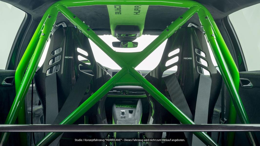 Штатные диски заменены чёрно-зелёными колесами MB Design с шинами Pirelli P Zero Trofeo R. Интерьер отделан алькантарой в тон кузову, дополнен углепластиковым декором и карбоновыми креслами Recaro для водителя и переднего пассажира. Вместо заднего дивана установлен каркас безопасности, окрашенный в ярко-зелёный цвет. Был серьёзно доработан двигатель.