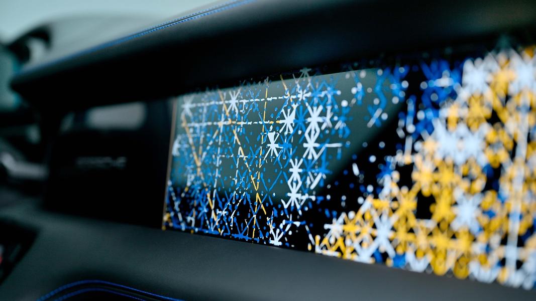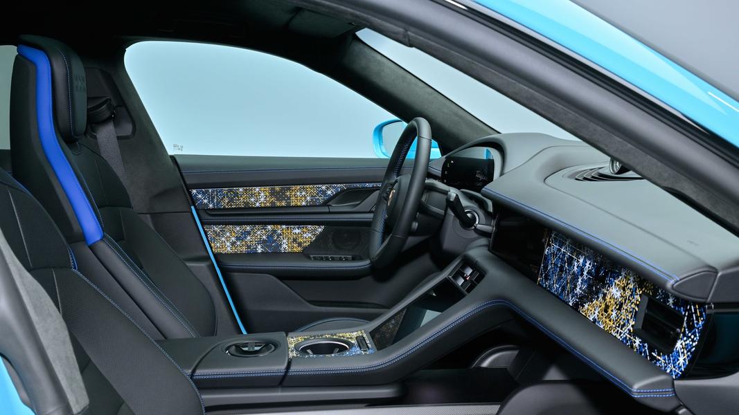 Фрагменты картины нанесены на капот, задний спойлер и корпуса наружных зеркал Taycan Turbo S. С помощью специальной маскировочной пленки, адаптированной к рисунку, специалисты наносили каждый цвет отдельно, а затем покрыли работу двумя слоями прозрачного лака. Элементы «Appearance of Crosses 2022-2» использованы в отделке передних и задних дверей, на приборной панели и вокруг передних подстаканников.