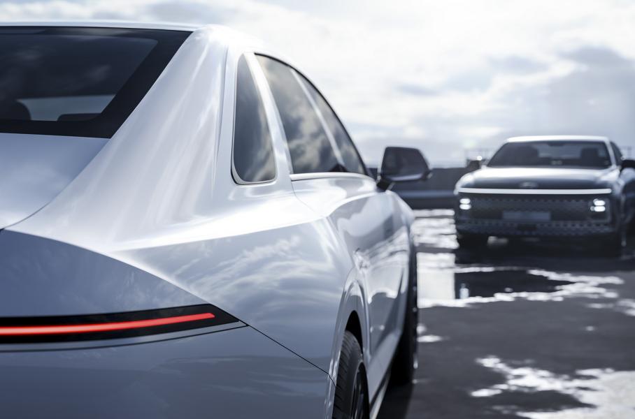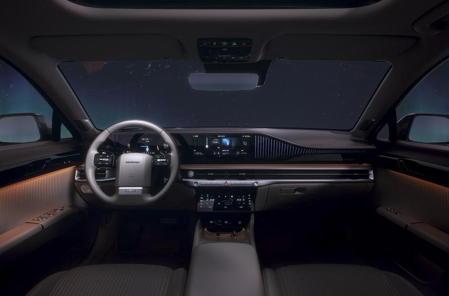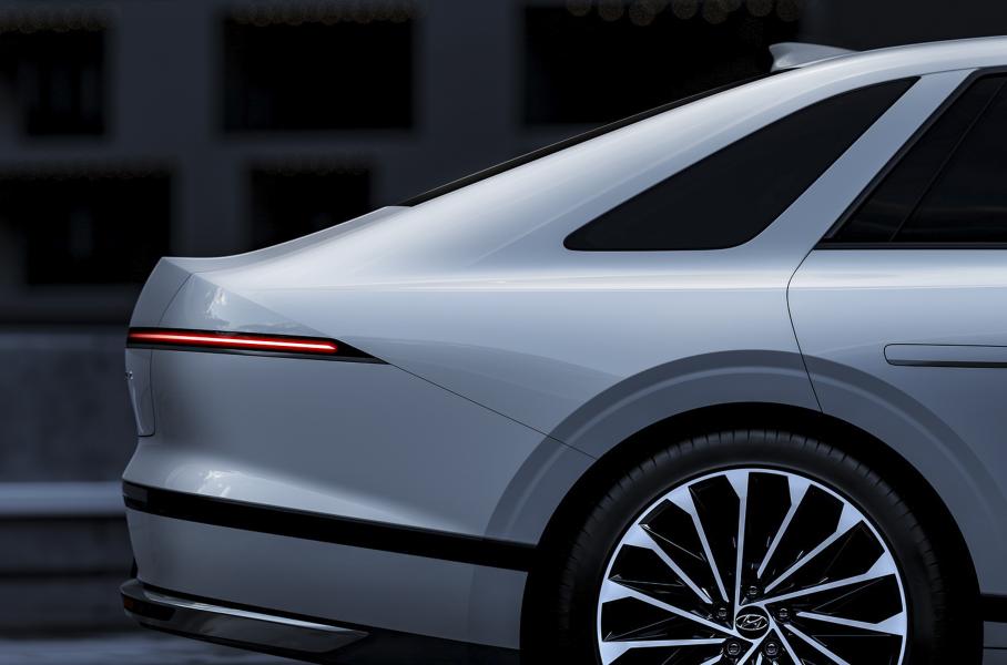 «Седьмой» Grandeur разительно отличается от предшественника, при этом в дизайне экстерьера спрятаны отсылки к первому поколению модели. К таковым относится радиаторная решетка прямоугольной формы с расположенными по бокам основными фарами. Дневные ходовые огни выполнены в виде сплошной светодиодной линии – этот элемент в самой компании называют Seamless Horizon. Премиальности седану добавляют безрамочные двери с выдвижными ручками.
