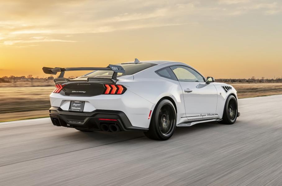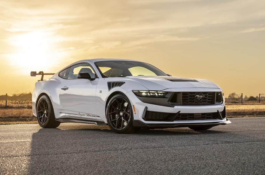Фастбек обзавелся приводным нагнетателем, 20-дюймовыми колесами и новым аэродинамическим обвесомАтелье Hennessey Performance добавило Ford Mustang Dark Horse приводной нагнетатель и назвала сие творение Super Venom. Правда, «супервеномом» может быть и обычный Mustang GT, так как и там, и там под капотом стоит модернизированная «восьмерка» Coyote объемом пять литров. Техасцы меняют систему впуска, топливные форсунки, насосы и прошивку, чтобы на выходе получить 862 лошадиные силы и 881 Нм крутящего момента. Довольно серьезная прибавка на фоне стоковых 507 сил и 567 Нм.