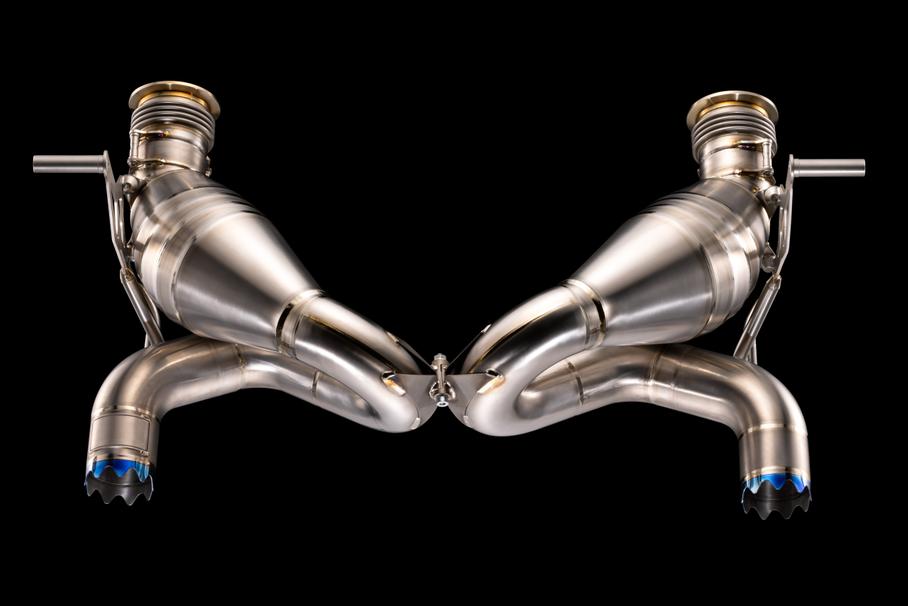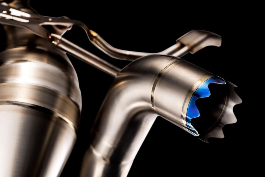 Выхлопную систему выпустят ограниченным тиражомМасса выхлопной системы составляет всего 6,45 килограммов за счёт использования в конструкции двух лёгких металлов: сама выхлопная система изготовлена из титана, а сильфоны — из инконеля. Сваривать воедино два этих металла сложно, но Бальбони нашёл выход за счёт особой конструкции выхлопа.