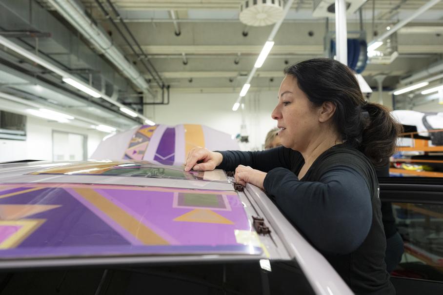 Новинка отдаёт дань уважения проекту 1991 годаВдохновившись фирменными цветами и геометрическими узорами африканской художницы, инженер-исследователь BMW Group Стелла Кларк решила воплотить их с помощью современных технологий на современной модели марки. «Холстом» стал электрический седан BMW i5, кузов которого покрыли 1349 сегментами плёнки на основе технологии E-Ink, цвета которой с помощью импульсов электрического тока можно менять, формируя различные узоры.