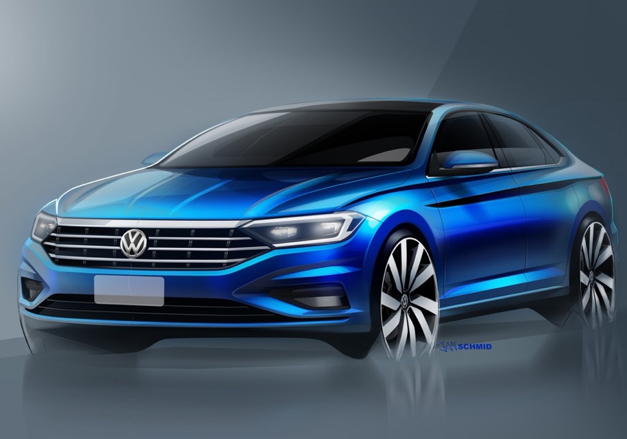 Эскизы модели опубликовал американский офис маркиАмериканский офис компании Volkswagen полностью раскрыл дизайн седана Jetta нового поколения. Эскизы модели, в том числе изображения интерьера с цифровой приборной панелью, размещены на официальной странице автопроизводителя в Twitter.