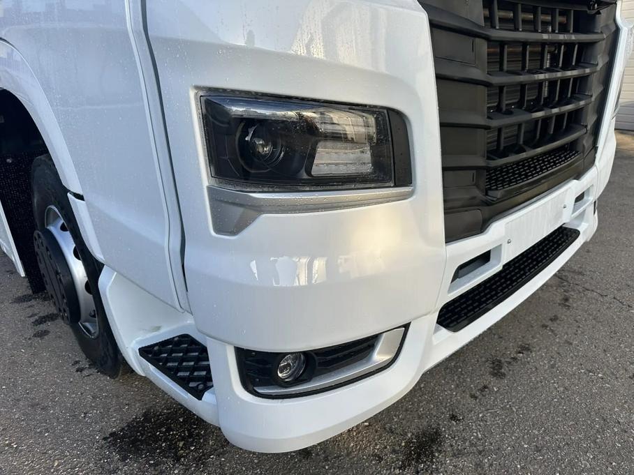 Штатная аудиосистема седельного тягача была усовершенствована ради достижения большей глубины звучания, а обод рулевого колеса — перетянут высококачественной кожей.