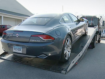 Журналисты, не сумевшие самостоятельно устранить поломку, вызвали специалистов "Фискера", однако и они не смогли завести машину. В результате гибрид погрузили на эвакуатор и отправили в техцентр. "Карма" провела на сервисе два дня, ей заменили дефектный блок литий-ионных аккумуляторов и кабель инвертора.
