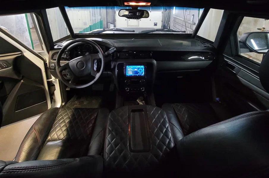 Пробег защищенной машины составляет всего 18 000 километровЗа восемь лет эксплуатации внедорожник прошел всего 18 000 километров. Большую часть жизни «Комбат» провел в отапливаемом гараже. При этом машину никогда не использовали в зимний период. Серо-белый кузов модели дополнен темным кожаным салоном и черными колесными дисками. Судя по фотографиям, модель сохранилась в отличном состоянии.