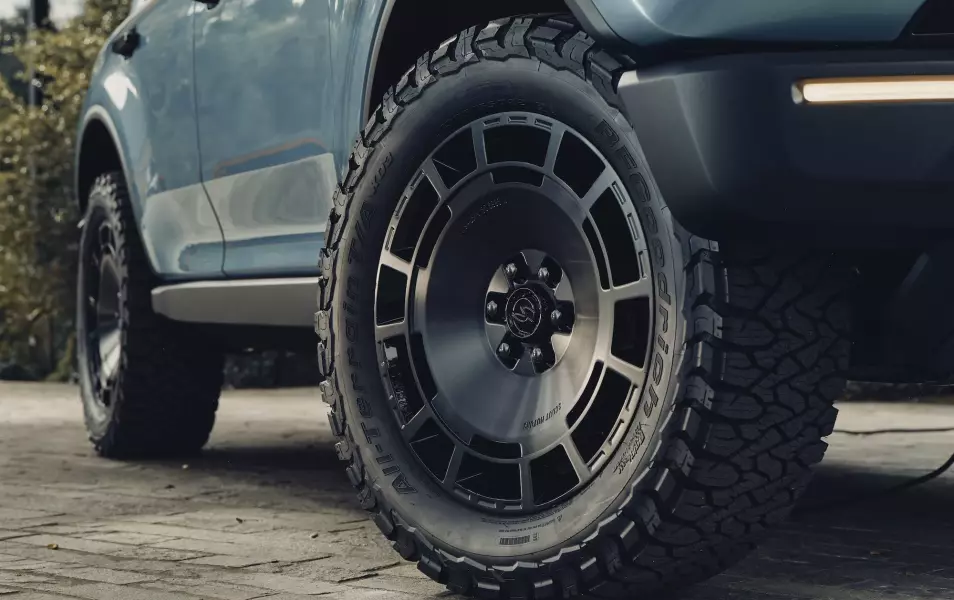 Доработанный концепт также дополнен 22-дюймовыми колёсами черного цвета с внедорожными шинами BF Goodrich внешним диаметром 35 дюймов. У автомобиля чёрная крыша и дверные ручки, а также необычный внешний багажник в форме рюкзака. Он установлен вместо запасного колеса на двери багажного отсека и располагает двумя водонепроницаемыми отделениями для хранения вещей. Scout прямо намекает, что этот аксессуар имеет все шансы попасть в серийное производство.