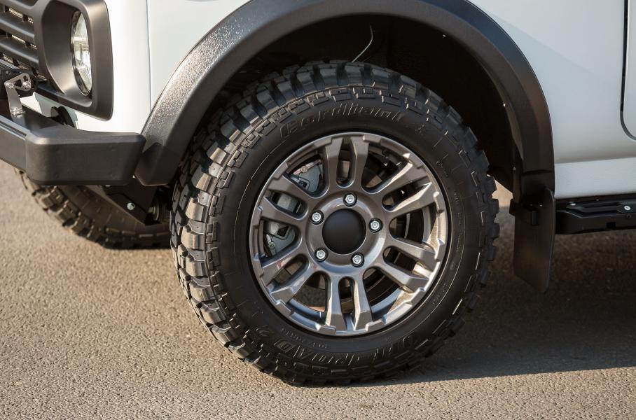 Светодиодные противотуманки, шноркель, расширители колёсных арок и горб воздухозаборника на капоте взяты у раллийной «Нивы». По салону прототип напоминает Niva Sport с «Гонки чемпионов»: поменялись рычаги коробки передач и раздатки, добавились кресла с развитой боковой поддержкой. Сами сиденья впрочем другие: отличаются и профиль, и расцветка.