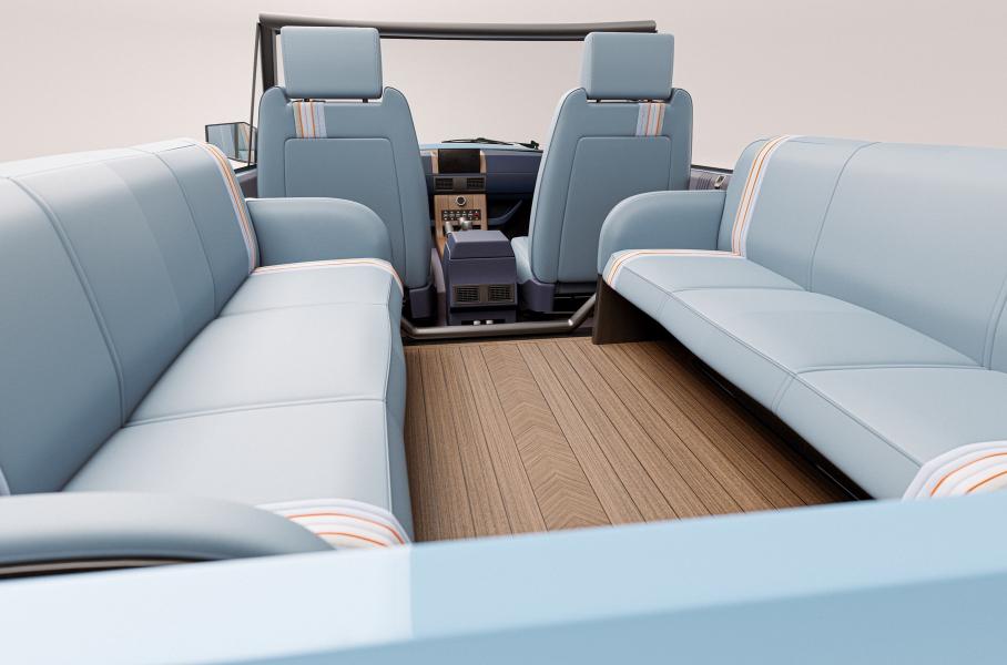 Внутри внедорожника есть беспроводная зарядка, подстаканники с функцией подогрева и охлаждения, холодильник для напитков и даже тайммувер для четырех наручных часов. На передней панели установлена мультимедиа с шестидюймовым дисплеем и поддержкой Apple CarPlay, а где-то в недрах кузова — 1300-ваттный усилитель аудиосистемы.