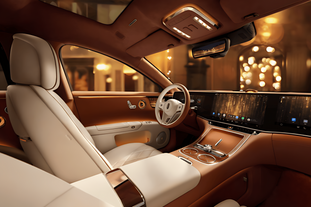 В салоне — ультракомфортные кресла второго ряда Zero Gravity с оттоманками и электрорегулировками в 20 направлениях. Седану положены три экрана плюс мониторы вместо внешних зеркал, проекционный дисплей, холодильник, подсветка и потолок «звездное небо» в духе Rolls-Royce.