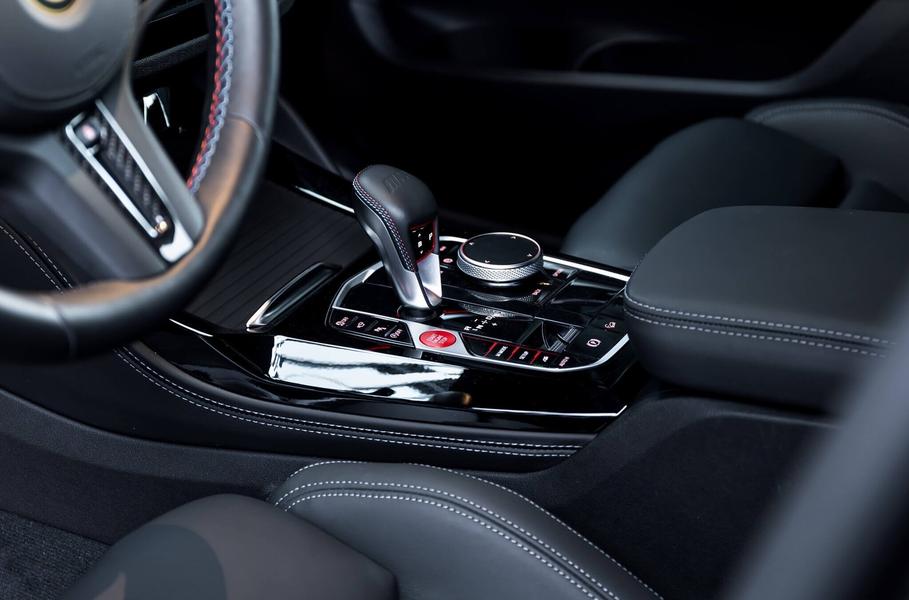 По традиции кроссоверу занизили подвеску: укороченные пружины H&R опустили кузов примерно 30 миллиметров. Штатные колеса уступили место легкосплавным Manhart Multispoke диаметром 22 дюйма, за которым просматриваются здоровенные суппорты заводских тормозов M Compound. Без нового обвеса эффект был бы неполным, поэтому для X3 M подготовили целый набор деталей из углепластика. В него вошли передний и задний спойлер, боковые юбки, а также диффузор. Композит можно найти и в салоне — из него сделаны вставки в руле и подрулевые переключатели.