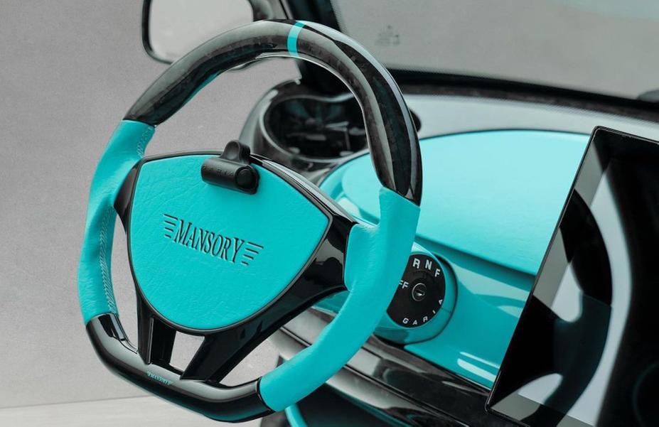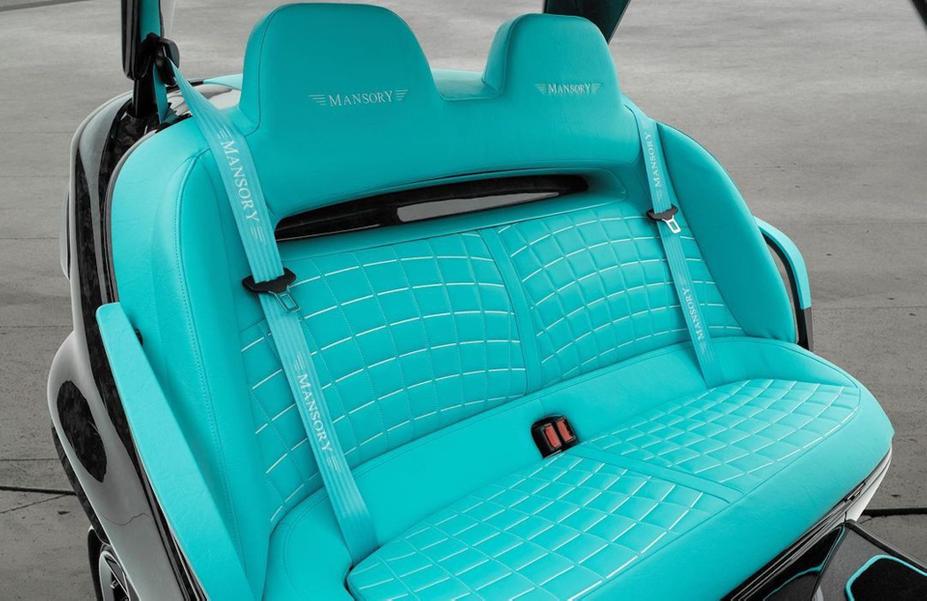 Проект прославленных тюнеров отличается эпатажным обликом, поскольку все внешние панели сделаны из кованого углеволокна, а всё, что не выполнено из карбона, обито роскошной бирюзовой кожей.