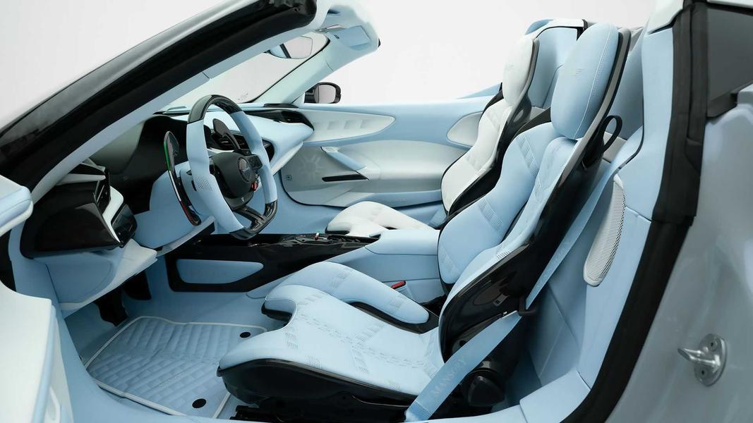 Один установлен между двигателем и коробкой передач, два других — на передней оси. На Mansory F9XX ДВС форсирован до 980 сил и 980 Нм момента, так что комбинированная мощность составляет 1100 лошадиных сил. Всего будет сделано три экземпляра Mansory F9XX Tempesta Celeste, каждый из которых в рамках программы One of One получит особое оформление кузова и салона.