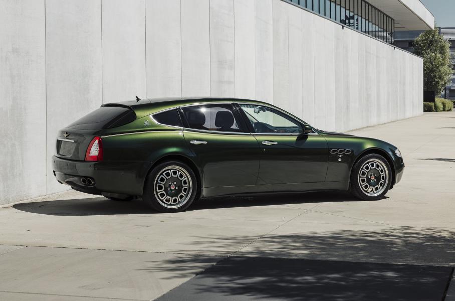 За переработанную вручную версию Quattroporte покупатель выложил 161 тысячу евроАтелье выпустило четыре Bellagio, что делает универсал одним из самых эксклюзивных Maserati. Экстерьер выполнен в темно-зеленом металлике Forest Green с золотыми акцентами и 19-дюймовыми колесными дисками Borrani Bimetal, а кастомизированный салон обшит бежевой кожей.