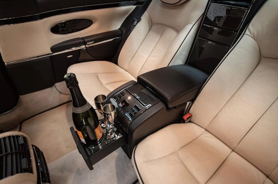 Специально для футболиста инженеры построили черный «Майбах» с белым кожаным салоном, который дополнен карбоновыми вставками. В списке опций присутствует премиальная аудиосистема Bose, встроенный холодильник, а также столики для задних пассажиров и телефоны.
