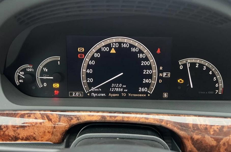 На одометре 128 тысяч километров, что с учётом 20-летнего возраста автомобиля вызывает сомнения. С другой стороны владельцев по документам всего три, а модификация S 350 (272 лошадиные силы) означает, что в случае регистрации налог будет относительно невысок. К состоянию оригинальных кресел и дверных карт претензий нет, а вот качество кустарных деталей оставляет желать лучшего.