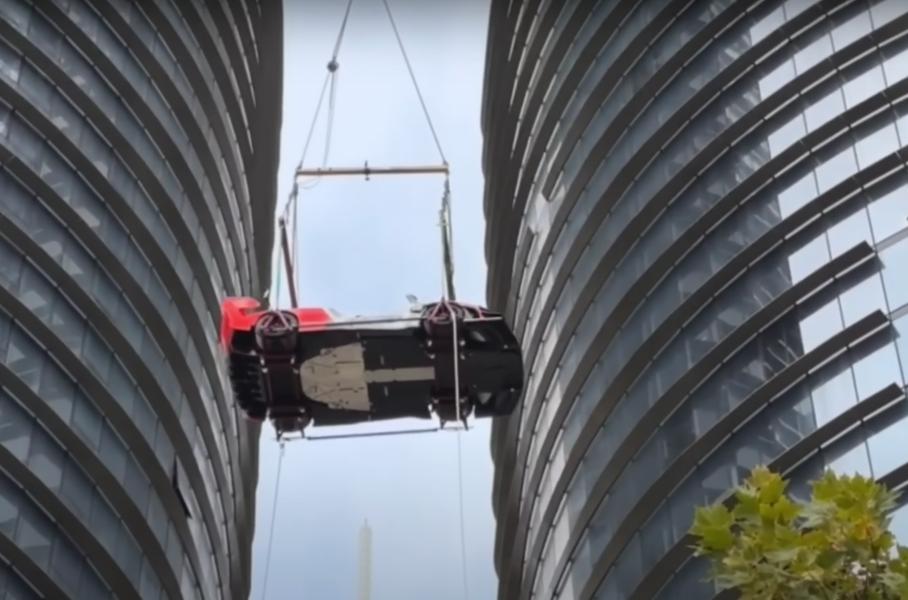 Посмотрите, как McLaren Senna GTR поднимают на 57 этаж небоскреба