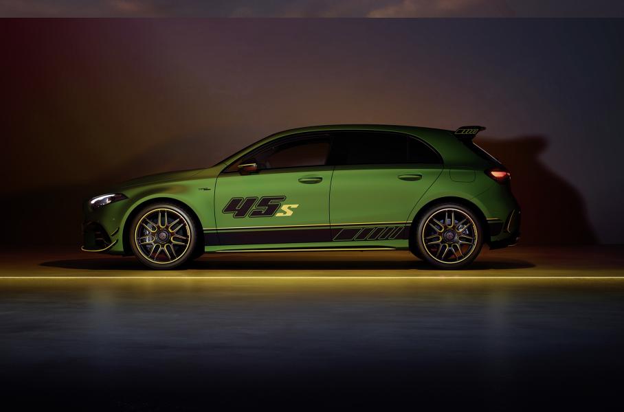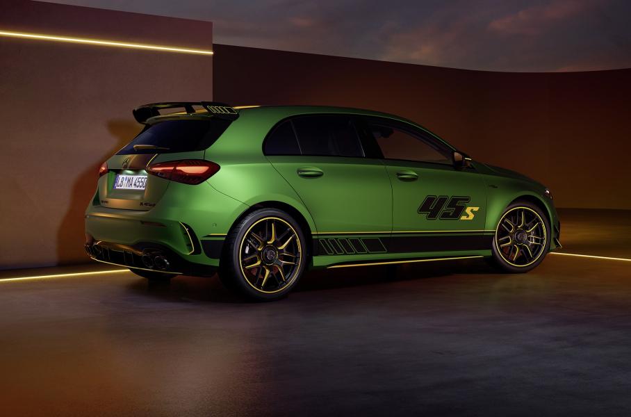 В стандартное оснащение хэтчбеков включены пакеты AMG Night Package и Night Package II с чернеными элементами обвеса и набор AMG Aerodynamics, в который входит фиксированное антикрыло. В салоне — кресла AMG performance, обитые кожзамом ARTICO и микрофиброй MICROCUT; желтая прострочка; вышивки «A 45 S» на подголовниках; а также руль с оплеткой из кожи и микрофибры. Дополняют облик лимитированного издания накладки из алюминия с узором AMG и пороги с подсветкой.