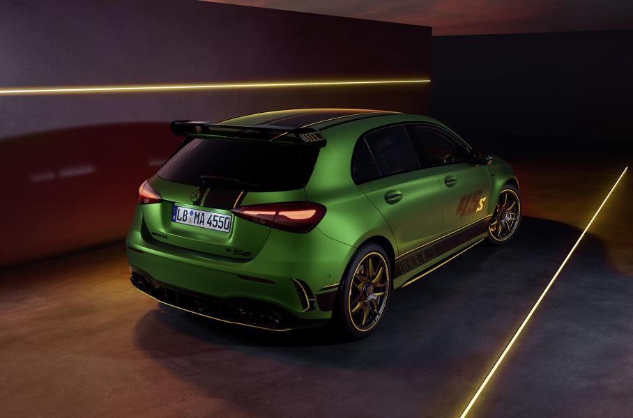 Представлен хэтчбек A 45 S 4Matic+ Limited EditionХэтчбек Mercedes-AMG A 45 S 4Matic+ отныне можно заполучить в особом исполнении Limited Edition. Заказы на такие машины будут принимать с апреля и до конца этого года, а обойдутся они на 14 280 евро дороже обычных A 45 S. Впервые компактные зажигалки окрашены в шикарный цвет AMG green hell magno, дебютировавший на Mercedes-AMG GT R в 2016-м. Вдобавок помогают выделиться наклейки с логотипами AMG и обозначениями модели, уникальные 19-дюймовые колеса и желтые акценты по всему кузову.