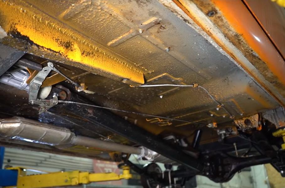 «Москвичу» повезло — на корпус нанесли консервант, автомобиль хранился в сухом помещении, поэтому для возвращение в заводское состояние после долгого простоя ему потребовалась только химчистка и аккуратная мойка. Рычаг подвески благополучно заменили и установили новые расходники.