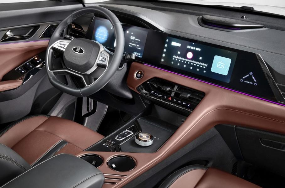 Внешне «восьмой» отличается от исходного Sehol X8 Plus только шильдиками, то же самое можно сказать и про салон. На центральной панели установлены два экрана, цифровая «приборка» диагональю 12,3 дюйма и тачскрин мультимедийной системы, которая поддерживает Apple CarPlay и Android Auto. Из оснащения пока заявлены камеры кругового обзора и беспроводная зарядка, но список опций может измениться ближе к запуску производства.