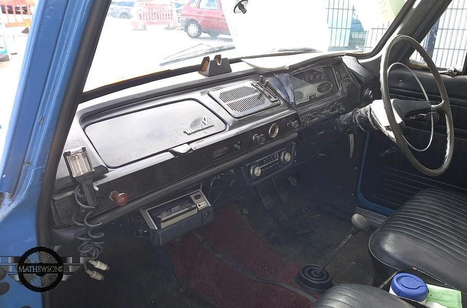 Этот экземпляр была изготовлен в 1972 году, и получил в Великобритании номера в сентябре того же года. Под капотом — двигатель УЗАМ-412 уфимского производства рабочим объёмом 1,5 литра, мощностью 75 лошадиных сил: довольно современный для того времени агрегат с алюминиевым блоком цилиндров и верхним расположением распредвала.