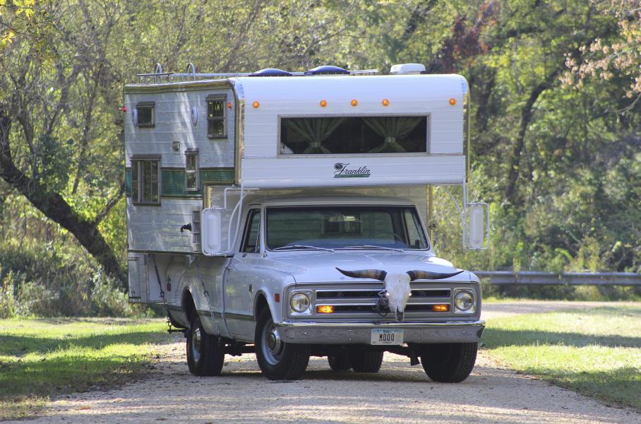 В описании лота на Bring a Trailer указано, что 54-летний C20 Longhorn полностью сохранил оригинальное оборудование. Винтажный жилой модуль Franklin, повторяющий по оформлению мятно-белую расцветку салона, пришлось слегка подкорректировать, чтобы уместить на грузовую платформу пикапа. И он, и сам автомобиль недавно были отреставрированы и пребывают в отличном состоянии.