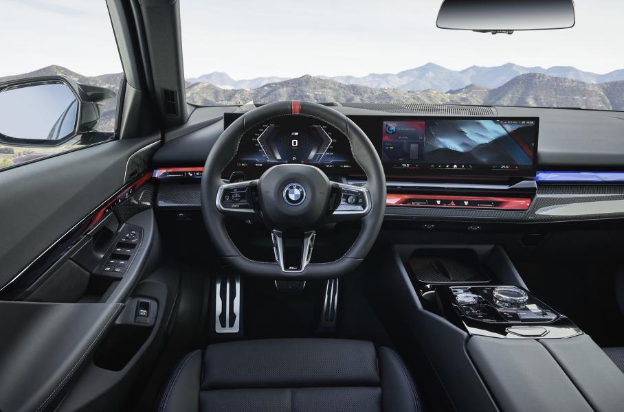 Штатно «пятерка» оснащена адаптивными светодиодными фарами, рулевым механизмом с переменным передаточным отношением и колесами диаметром 18/19 дюймов. В списке опций — заниженная спортивная подвеска, адаптивные амортизаторы Adaptive Suspension Professional («в базе» у BMW i5 M60 xDrive), система подавления кренов и полноуправляемое шасси.