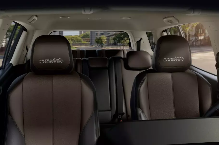 Богатым комплектациям Trailblazer положена виртуальная приборная панель, медиасистема с 11-дюймовым тачскрином, беспроводная зарядка и двухцветная кожаная обивка сидений с вышивками на подголовниках (только в новой версии High Country).