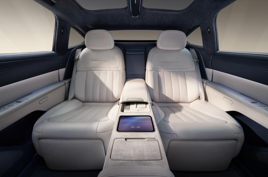 В каком ключе работает Чан Парк, можно увидеть на примере Nio ET9. Электрокар нацелен на конкуренцию с Mercedes-Maybach, Rolls-Royce и Cadillac, поэтому в салоне основное внимание уделено второму ряду. Раздельные кресла можно двигать в продольном направлении и менять угол наклона их спинок в диапазоне 45 градусов. К тому же тут есть оттоманки, массажер, вентиляция, электрорегулировки, планшеты диагональю 14,5 дюйма, мини-бар с охлаждением, столики и держатели с зарядкой для гаджетов.