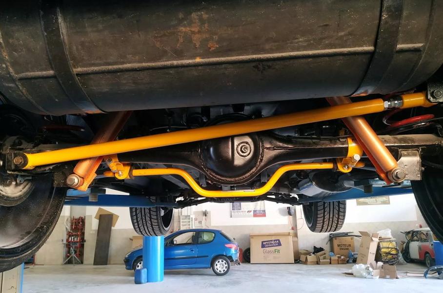 Доработки ходовой части свелись к занижению подвески, расширению колеи, переходу на гигантские дисковые тормоза от Porsche. Однако сзади остался неразрезной мост, так что разговоры от «спорткаровской управляемости» остаются на совести владельца. В салоне появилась красная кожа, в списке опций гидроусилитель руля, кондиционер, центральный замок и аудиосистема с сенсорным экраном.