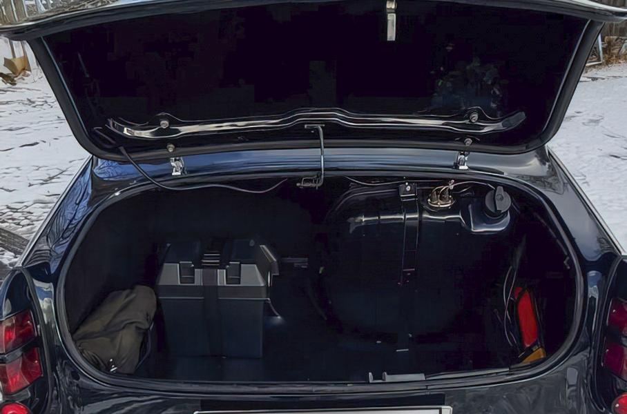 Кроме того, внешний вид автомобиля отличается кастомными колесными дисками черного цвета и круглыми зеркалами заднего вида на передних крыльях. Салон автомобиля выполнен из черной кожи. Также в интерьере можно заметить трехспицевой деревянный руль.