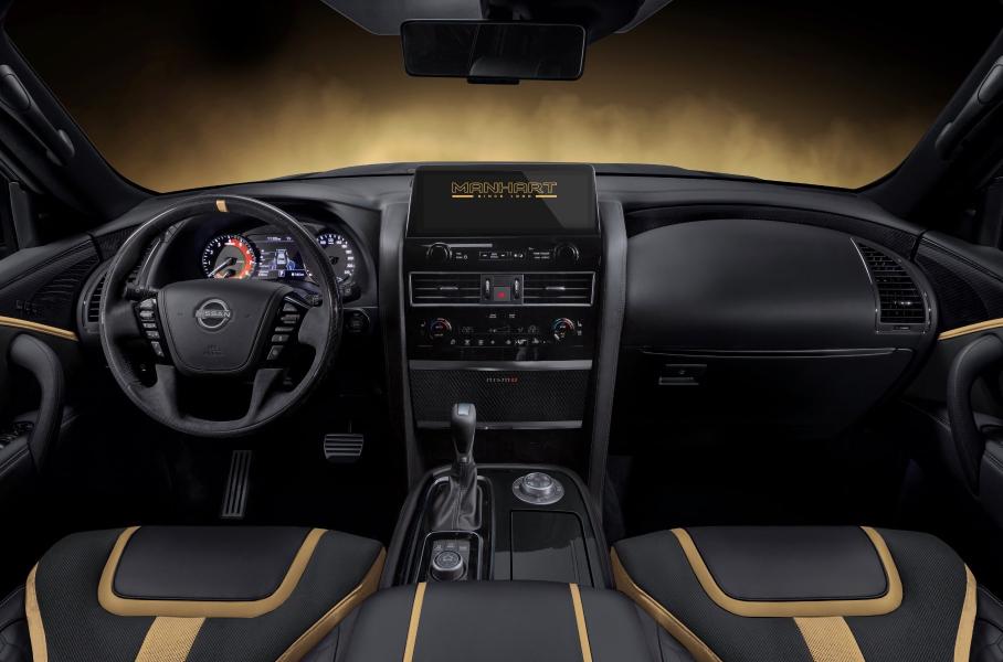Мощность агрегата V8 5.6 внедорожника — 650 лошадиных сил и 600 НмАтелье Manhart расширило свою деятельность на Ближнем Востоке. В честь этого события фирма подготовила специальный вариант Nissan Patrol Nismo — PT 650. Внедорожник получил характерный декор с золотистыми вставками и наклейками, 24-дюймовые кованые колеса и выпускную систему со спортивным катализатором на 200 ячеек. Но главное новшество, как обычно, скрыто от глаз — это модернизированный двигатель.