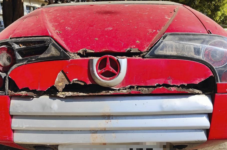 Причудливый автомобиль находится в печальном состоянииПервое, что бросается в глаза, при взгляде на необычный автомобиль – компоновка кузова. Вместо оригинального четырехдверного седана S-Class выполнили в виде двухдверного купе. Для этого тюнеры внесли серьезные изменения в конструкцию модели.