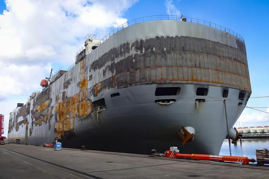 Посмотрите на последствия возгорания грузового судна с 4000 автомобилей