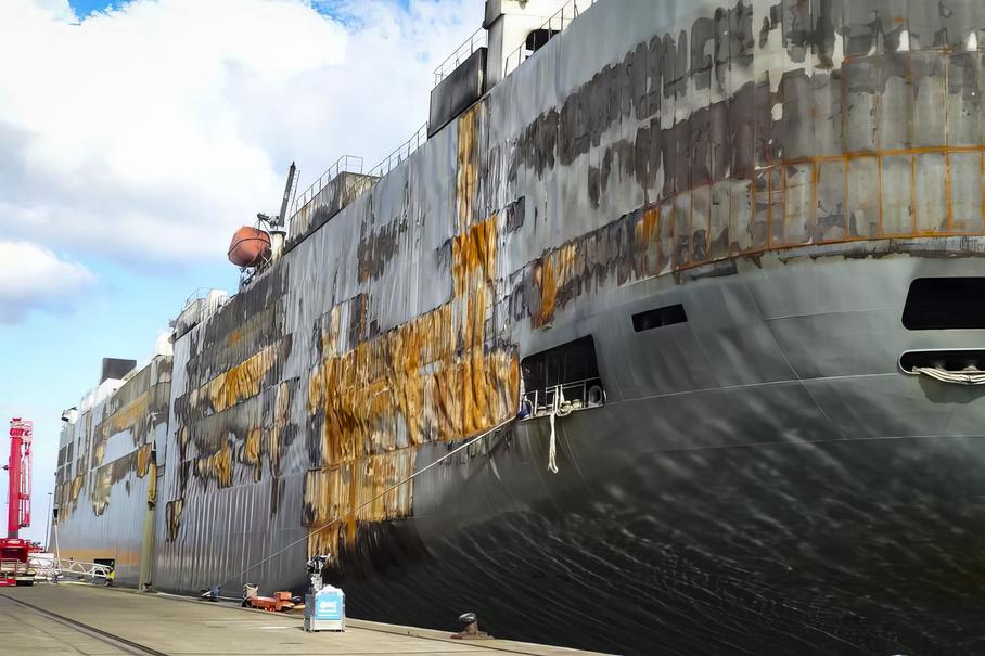 Все машины, находившиеся на борту, получили поврежденияСудя по фотографиям, большинство автомобилей, находившихся в трюме, практически полностью выгорели. В основном сухогруз перевозил модели BMW и Mercedes-Benz. Кроме того, пожар повредил несколько Porsche 911 и Taycan, а также пятидверные MINI. Судно Fremantle Highway рассчитано перевозку на шести тысяч транспортных средств. В момент пожара на борту находились 3784 автомобиля.