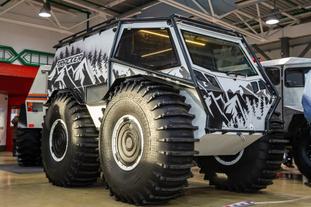 Снегоболотоход «Хищник» серийно выпускают на заводе в Тобольске. Суровая машина оборудована шинами сверхнизкого давления, которые позволяют перемещаться по любому типу местности, включая глубокий снег и воду. При этом снегоболотоход вмещает 12 пассажиров или полторы тонны полезного груза.