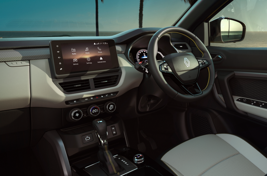 Салон почти такой же, как раньше, если не считать светлую отделку и новую эмблему Renault. По центру установлен прежний восьмидюймовый экран мультимедийной системы, который, правда, недоступен в «базе», как и кнопки на рулевом колесе. Зато самая дешевая комплектация поставляется с шестью подушками безопасности, системой помощи при старте на подъеме и задними парктрониками.