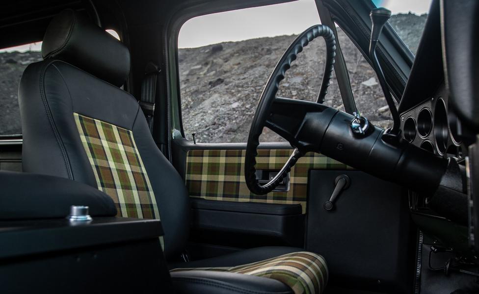 Автомобиль раньше нёс воинскую службу и был пожарным внедорожникомАвтомобиль 1984 года во времена своей молодости работал в частях военно-воздушных сил США в роли машины пожарной охраны, а после демобилизации оказался в руках специалистов Retro Designs. Внедорожник отреставрировали и окрасили его отремонтированный кузов в цвет Army Green, добавили чёрный силовой обвес и новые колеса бронзового оттенка.