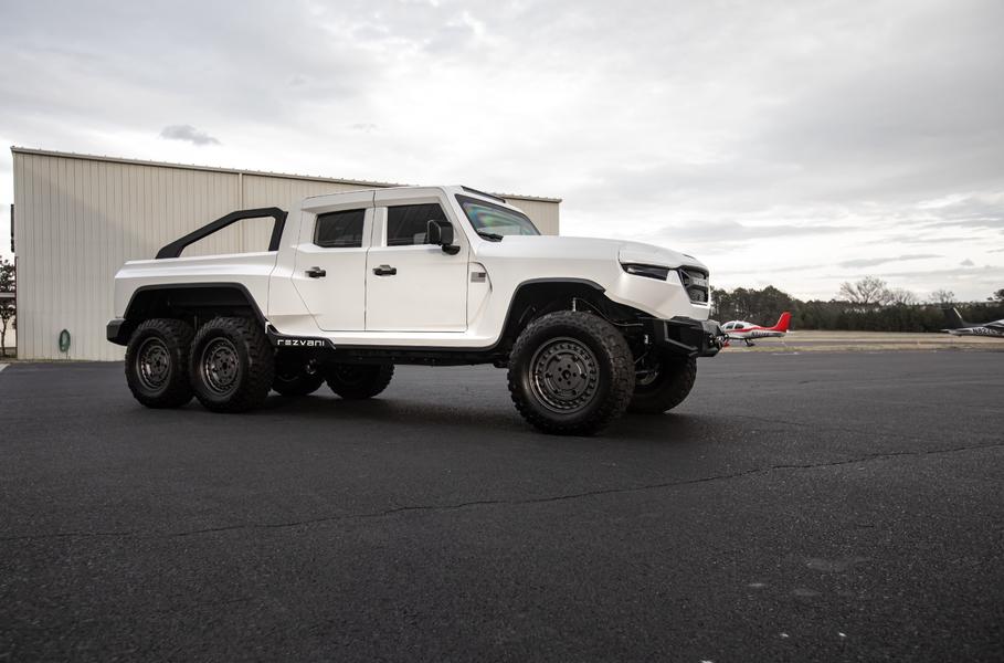 И это ещё не самый мощный агрегат Rezvani. За 149 тысяч долларов (9,4 миллиона рублей) под капот Hercules 6x6 впихнут бензиновый V8 объемом семь литров, который выдает 1318 сил. Он «расточен» из мотора V8 6.2 с приводным нагнетателем от Dodge Challenger SRT Demon, которому заменили ряд компонентов. Для тех, кому нужно попроще и подешевле, в гамме есть V6 3.6 Pentastar (289 л.с., 353 Нм), V8 6.4 HEMI (507 л.с., 583 Нм) и дизель V6 3.0 EcoDiesel (264 л.с., 600 Н•м).