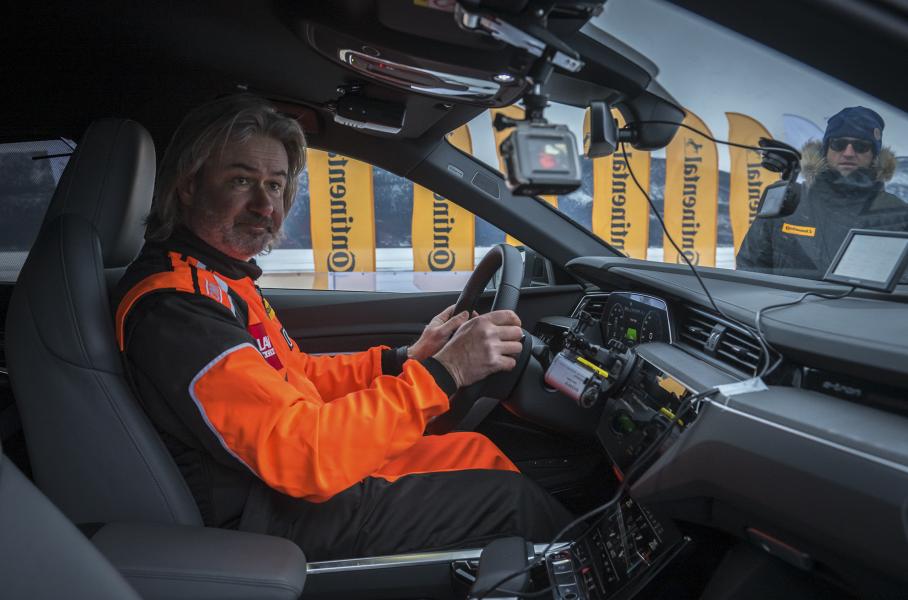 Специально для испытания электрокроссовер обули в нешипованные покрышки Continental VikingContact 7, которые подобрали с учётом веса резины, а также необходимостью не допускать серьёзных пробуксовок на льду. Подобные шины позволяют разогнаться на льду до 190 километров в час.