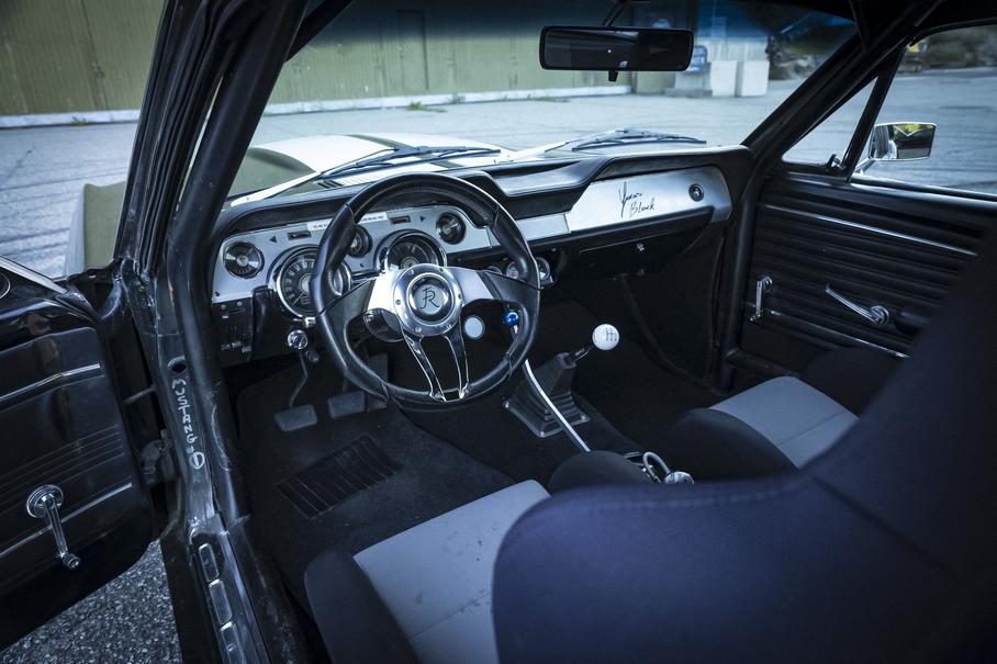 Нынешний владелец провел серьезную модификацию спорткараПосле покупки «Мустанга» нынешний владелец установил новую пятиступенчатую «механику» Tremec, модернизировал подвеску и систему рулевого управления, заменил топливный бак, а также добавил кастомизированный Х-образный выхлоп и регулируемые гоночные «ковши».