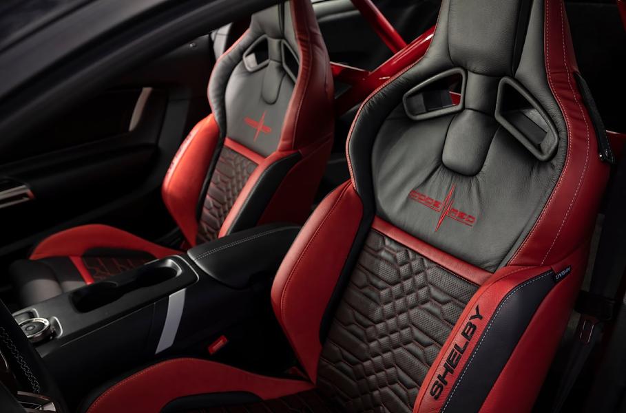 Из салона убран второй ряд сидений и установлен полукаркас безопасности для крепления ремней. Важное уточнение: с набором Code Red купе GT500 лишается заводской гарантии и допуска на обычные дороги.